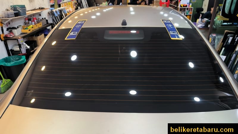 Selepas pemasangan cermin kereta siap dilakukan. Kereta tidak boleh dihantar untuk dicuci di car wash. Biarkan gam yang melekatkan cermin pada body kereta kering dan melekat dengan kuat dalam tempoh 3 hari. Selepas itu boleh cuci kereta macam biasa.